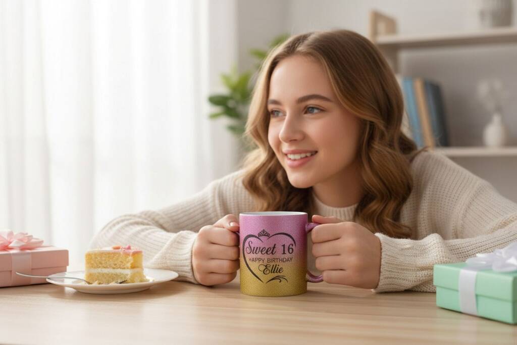 Personalised Sweet 16 Glitter Mug – Happy Birthday Gift