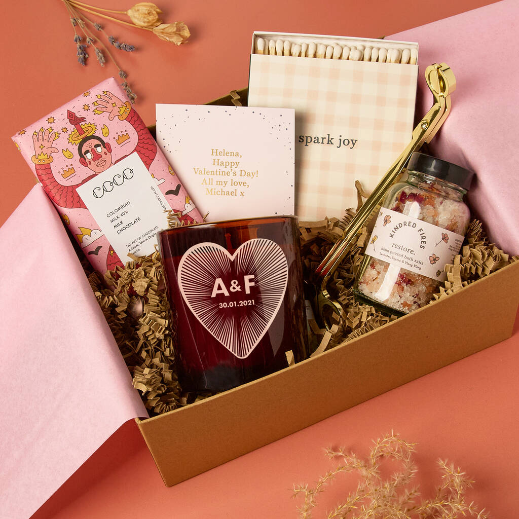 This luxury gift set pairs artisan treats with a bespoke keepsake candle, making it a thoughtful way to celebrate your loved one on Valentine's Day.
