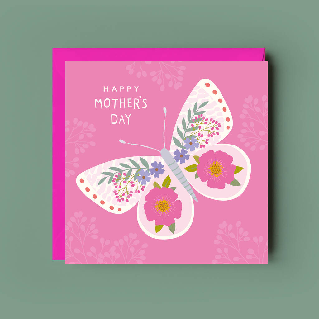 Happy Mother's Day Floral Pink Butterfly Card
