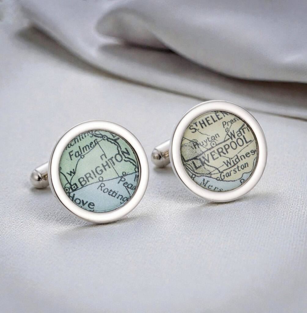A beautiful pair of vintage map cufflinks with locations unique to you.