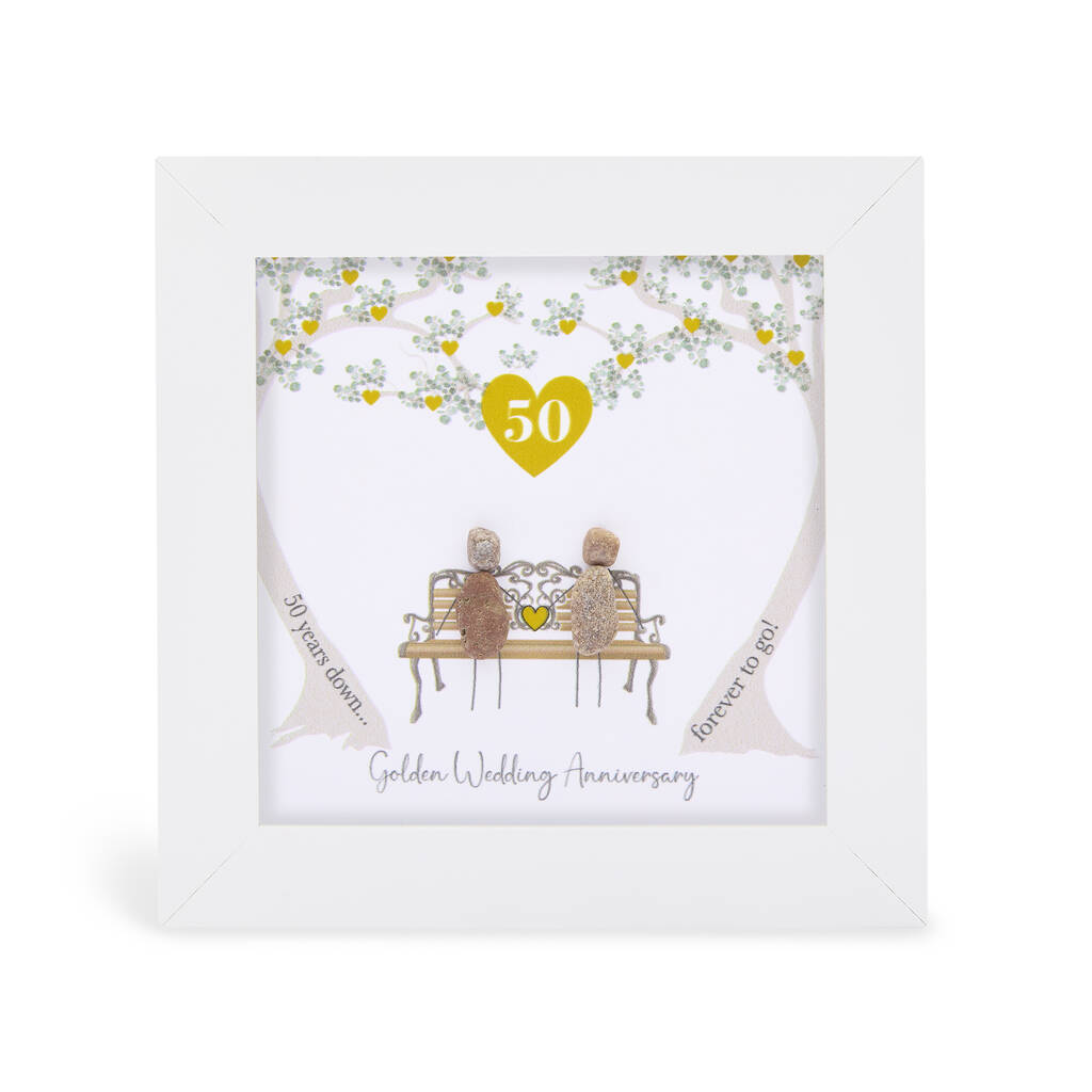 Our personalised 'Golden' Wedding Anniversary' pebble picture makes the perfect Anniversary gift celebrating 50 years of marriage. A treasured keepsake of their special milestone.