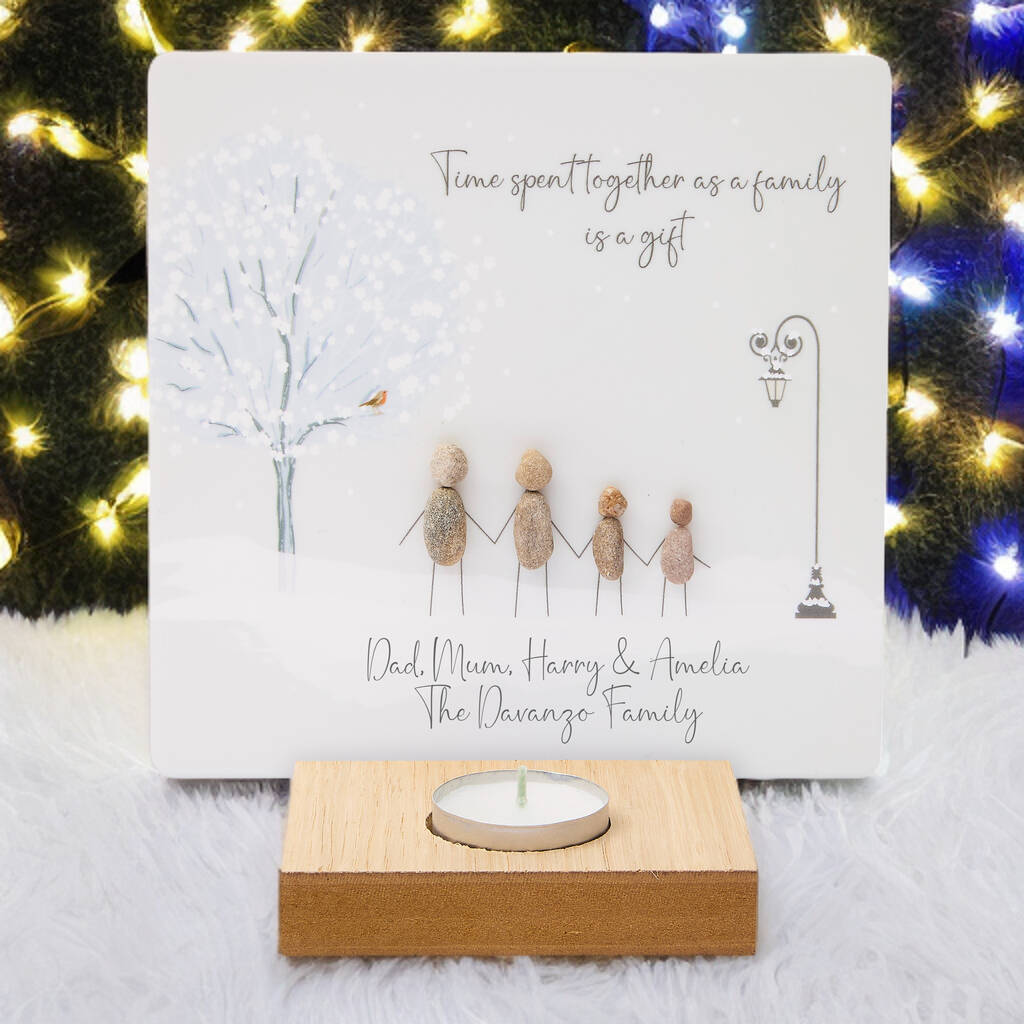 Personalised Pebble Family Christmas T Light Holder