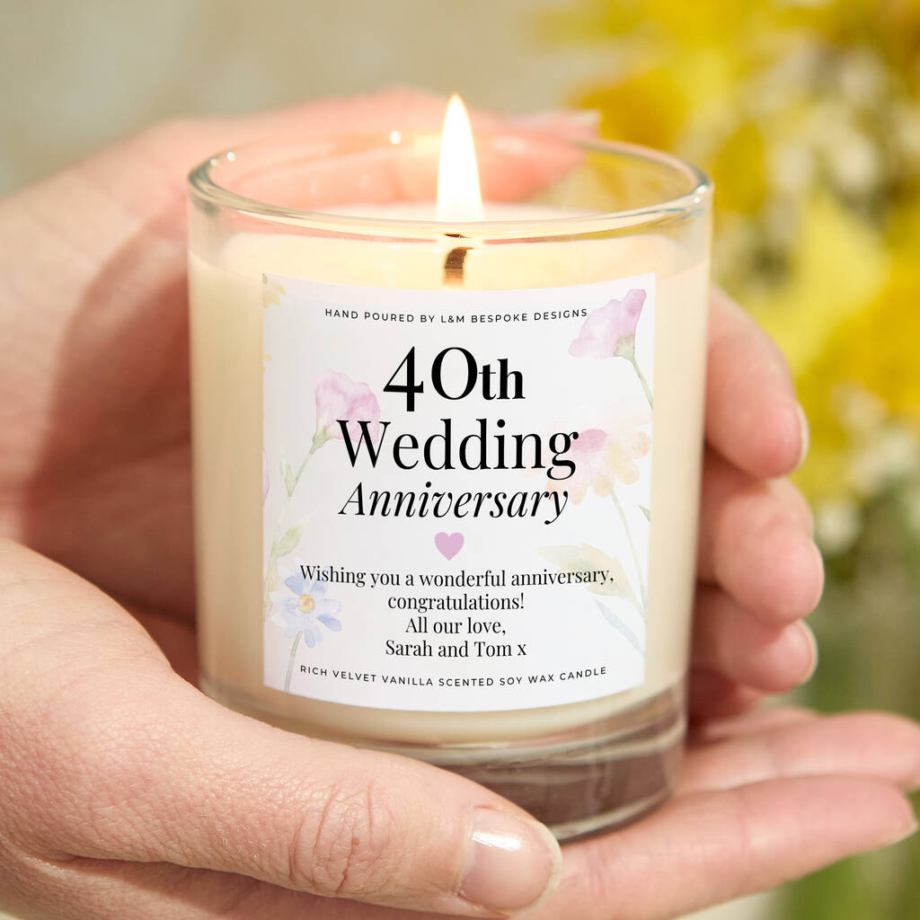 40th Wedding Anniversary Gift Personalised Handmade Candle