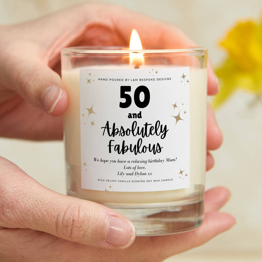 Personalised 50 And Absolutely Fabulous Candle With Gift Set Upgrade Options