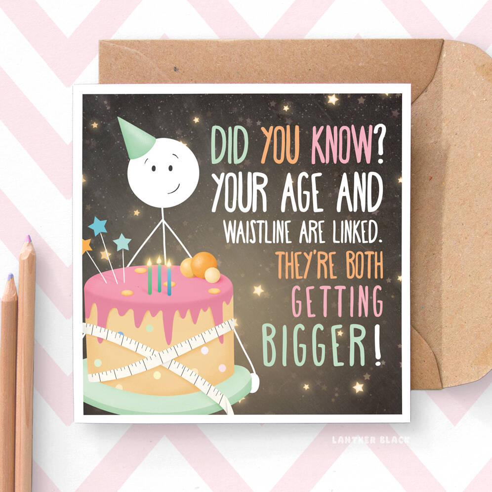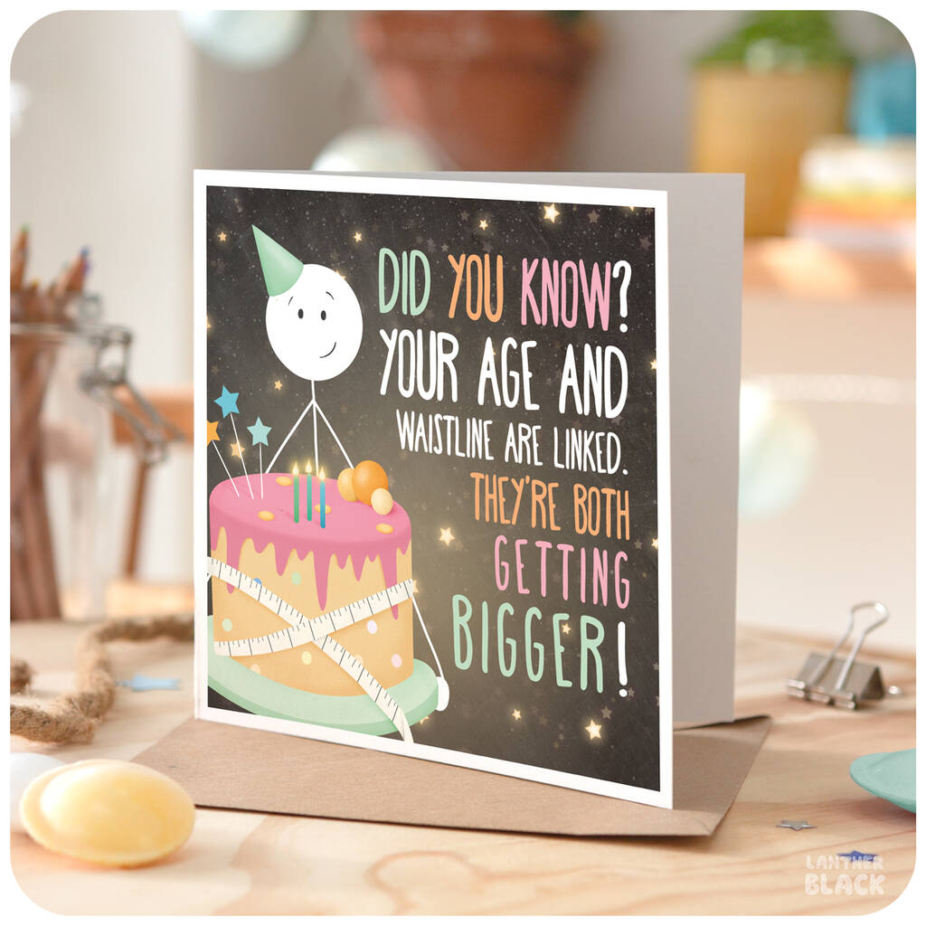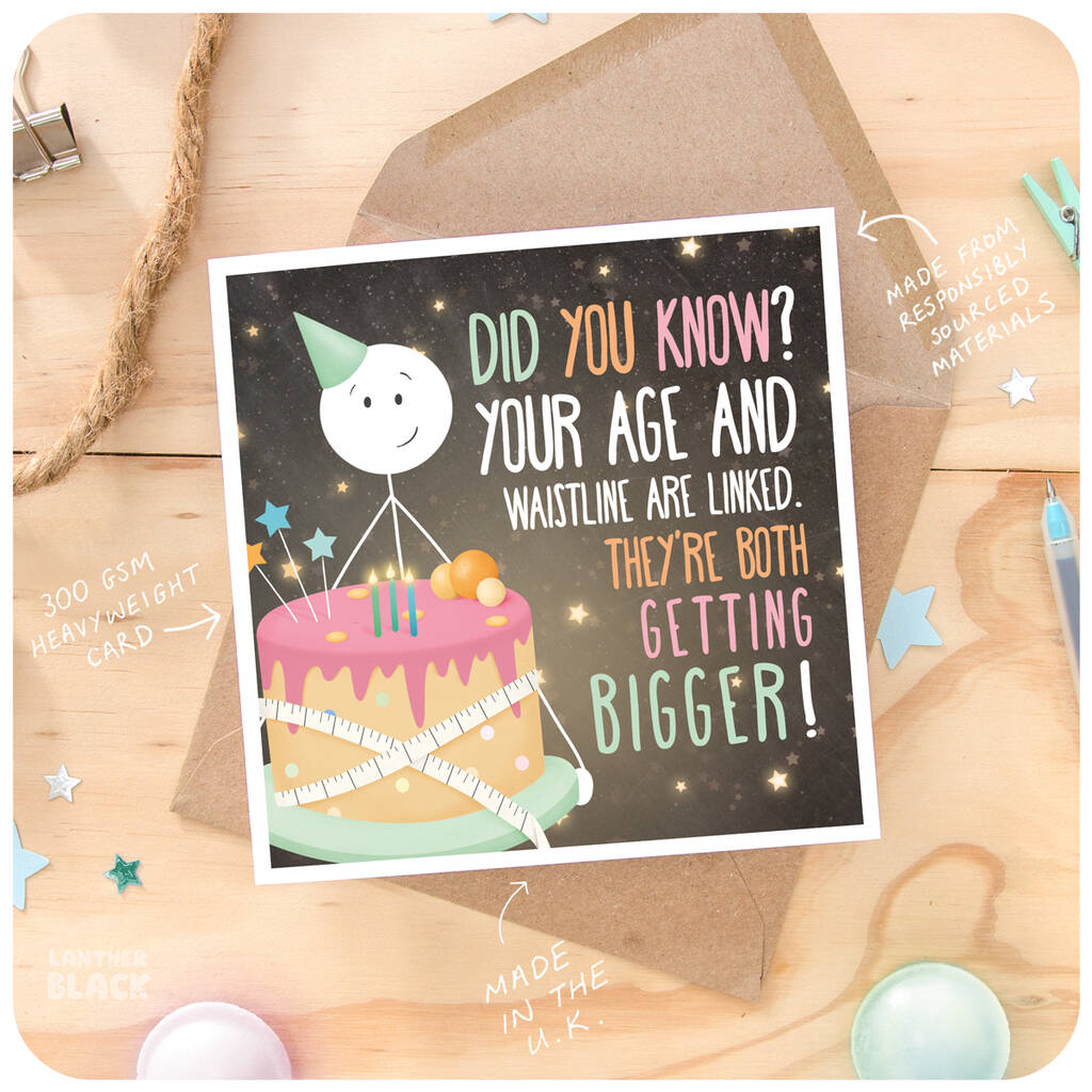 Waistline Funny Cheeky Cake Birthday Card Husband Wife Mum Dad Brother Sister 30 40 50 60 70