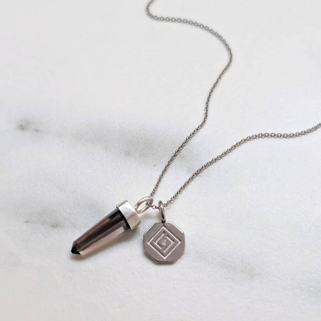 The En Pointe Duo Smokey Quartz Necklace, Silver