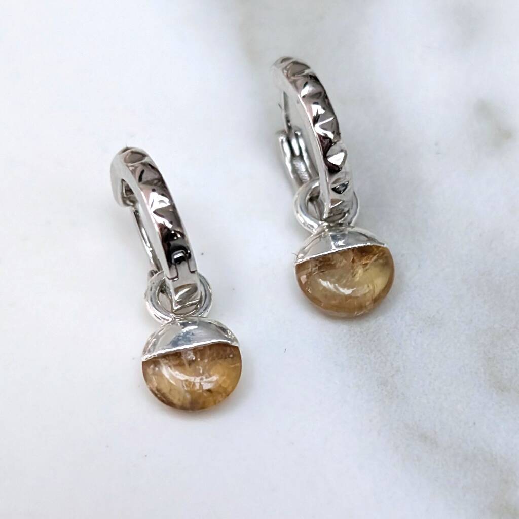 Radiating elegance and beauty, these stunning earrings comprise circular Citrine gemstone electroplated with sterling silver and suspended on delicate hoop earrings.