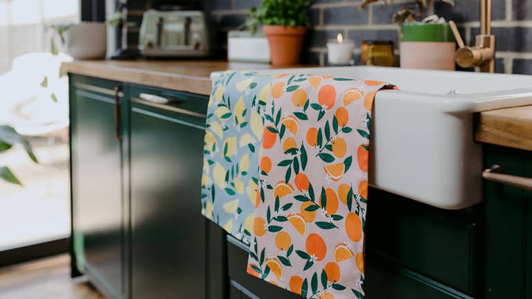 Tea towels are printed on organic cotton and digitally printed in small batches to avoid waste.