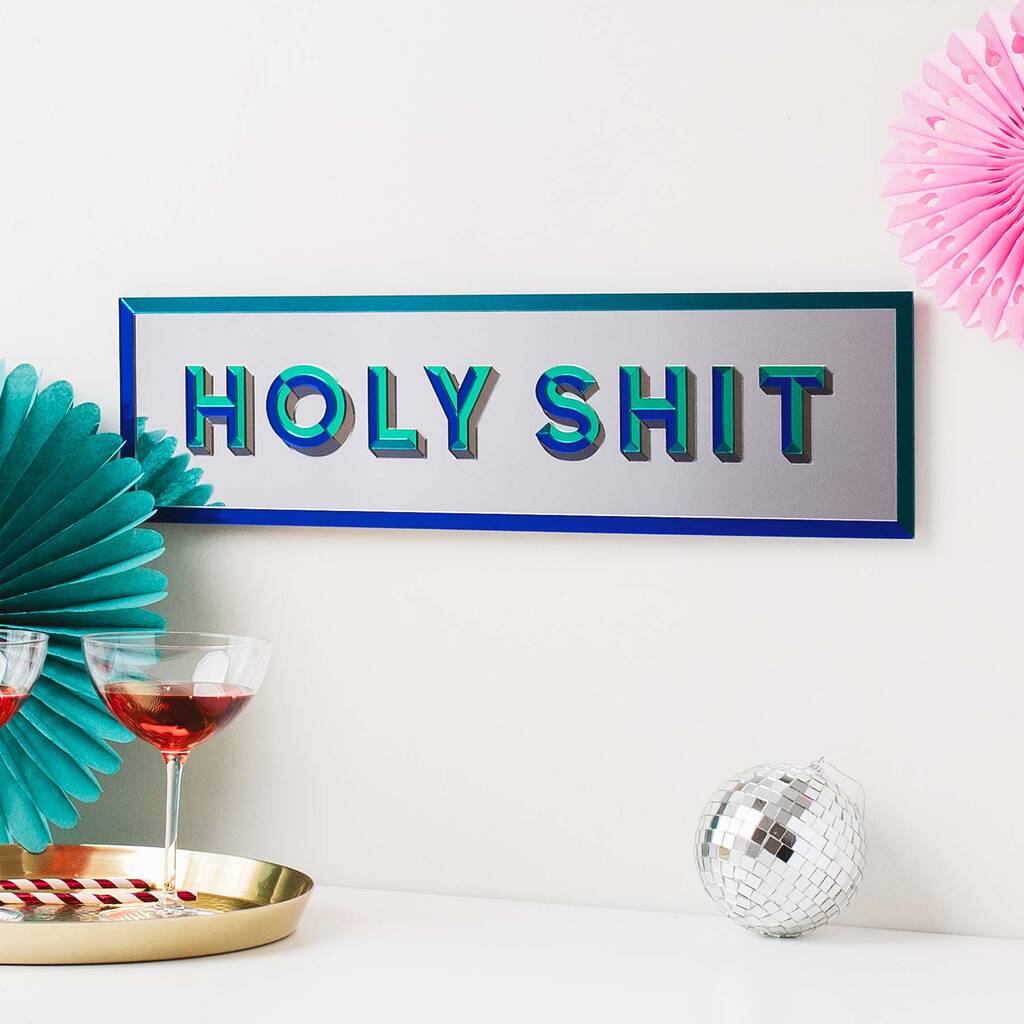 This retro-inspired HOLY SHIT mirror is a show-stopping piece of wall art, hand-crafted from layered mirrored acrylic for maximum shine and style.