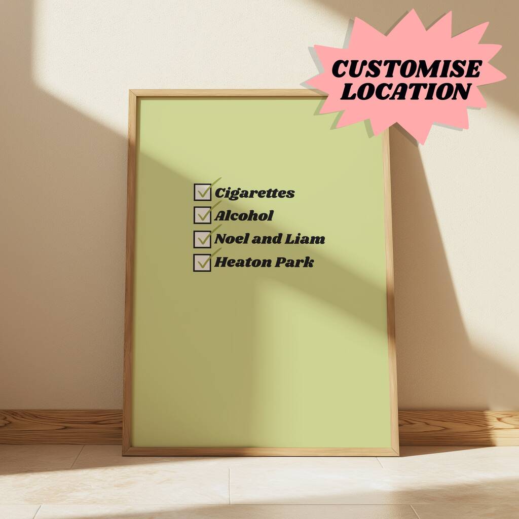 This Oasis Cigarettes & Alcohol print is perfect for any Oasis fans that we're lucky enough to attend one of their shows.