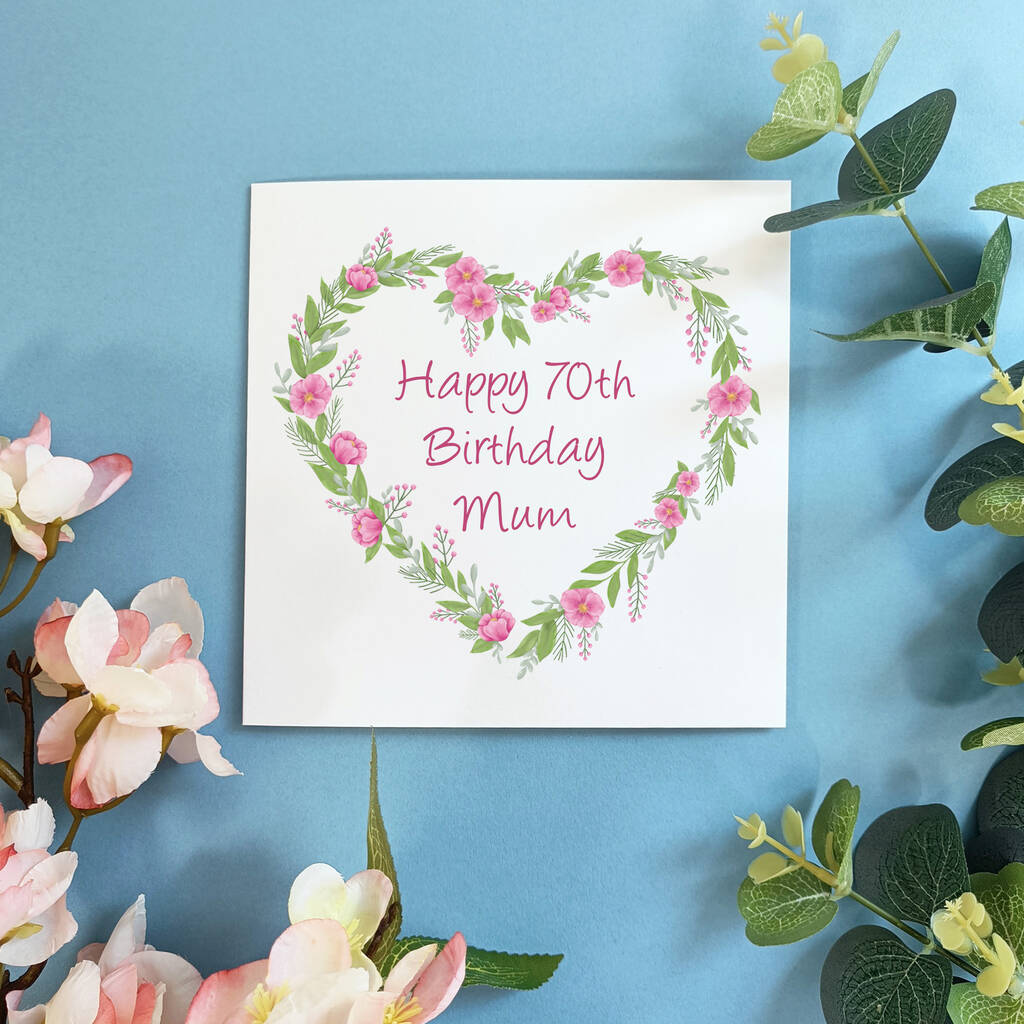 Personalised 70th Birthday Card | Floral Heart Birthday Card