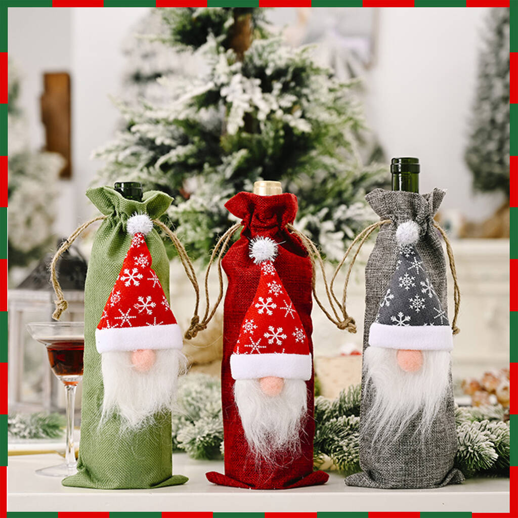 High-quality Christmas wine bottle covers, reusable linen, perfect for gifts, party table decoration, suitable for wine, champagne, treats, and festive celebrations.High-quality Christmas wine bottle covers made from soft, durable, and eco-friendly linen. Non-toxic and odorless, these covers are reusable and easy to wash. Perfect for wrapping wine, champagne, mineral water, cider, olive oil, candies, chocolates, biscuits, and small gifts, letting your creativity shine. Ideal for holiday parties, family dinners, or festive gatherings, they add a warm and cheerful touch to any table. A thoughtful gift for wine lovers, friends, and family, enhancing the Christmas spirit. Easy to use, practical, and stylish, these festive pouches make gift-giving simple, fun, and memorable for everyone.