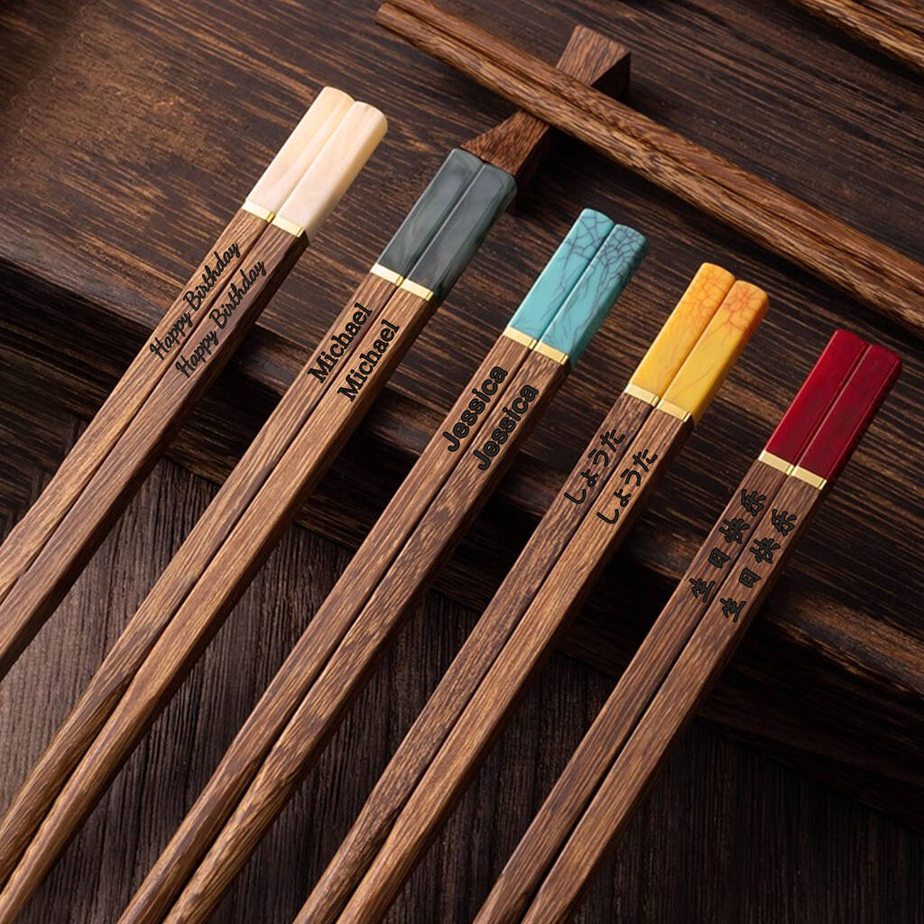 Beautifully engraved natural wood chopsticks, customizable in multiple languages. A meaningful, ready-to-gift keepsake perfect for weddings, anniversaries, birthdays, and Asian cuisine , elegant touch.Beautifully crafted from authentic natural wood, these engraved chopsticks offer a unique blend of elegance, comfort, and sentiment. Each pair is lightweight, durable, and designed with non-slip tips for effortless use with sushi, ramen, hot pot, and all your favorite dishes. Personalization is available in multiple languages, allowing you to create a truly meaningful gift for weddings, anniversaries, birthdays, housewarmings, or business events. Choose your preferred font and customize each chopstick individually for a one-of-a-kind keepsake. Packaged in a premium gift box, these chopsticks arrive ready to delight anyone who appreciates thoughtful, practical, and beautifully crafted items.