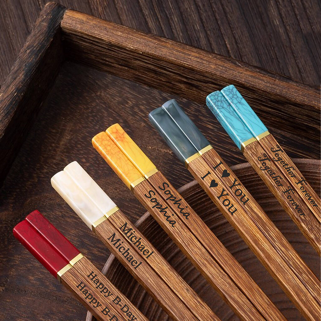 Beautifully engraved wood chopsticks, customizable in multiple languages. A meaningful, ready-to-gift keepsake perfect for weddings, anniversaries, birthdays, and Asian cuisine lovers seeking elegant touch.Beautifully crafted from authentic natural wood, these engraved chopsticks offer a unique blend of elegance, comfort, and sentiment. Each pair is lightweight, durable, and designed with non-slip tips for effortless use with sushi, ramen, hot pot, and all your favorite dishes. Personalization is available in multiple languages, allowing you to create a truly meaningful gift for weddings, anniversaries, birthdays, housewarmings, or business events. Choose your preferred font and customize each chopstick individually for a one-of-a-kind keepsake. Packaged in a premium gift box, these chopsticks arrive ready to delight anyone who appreciates thoughtful, practical, and beautifully crafted items.