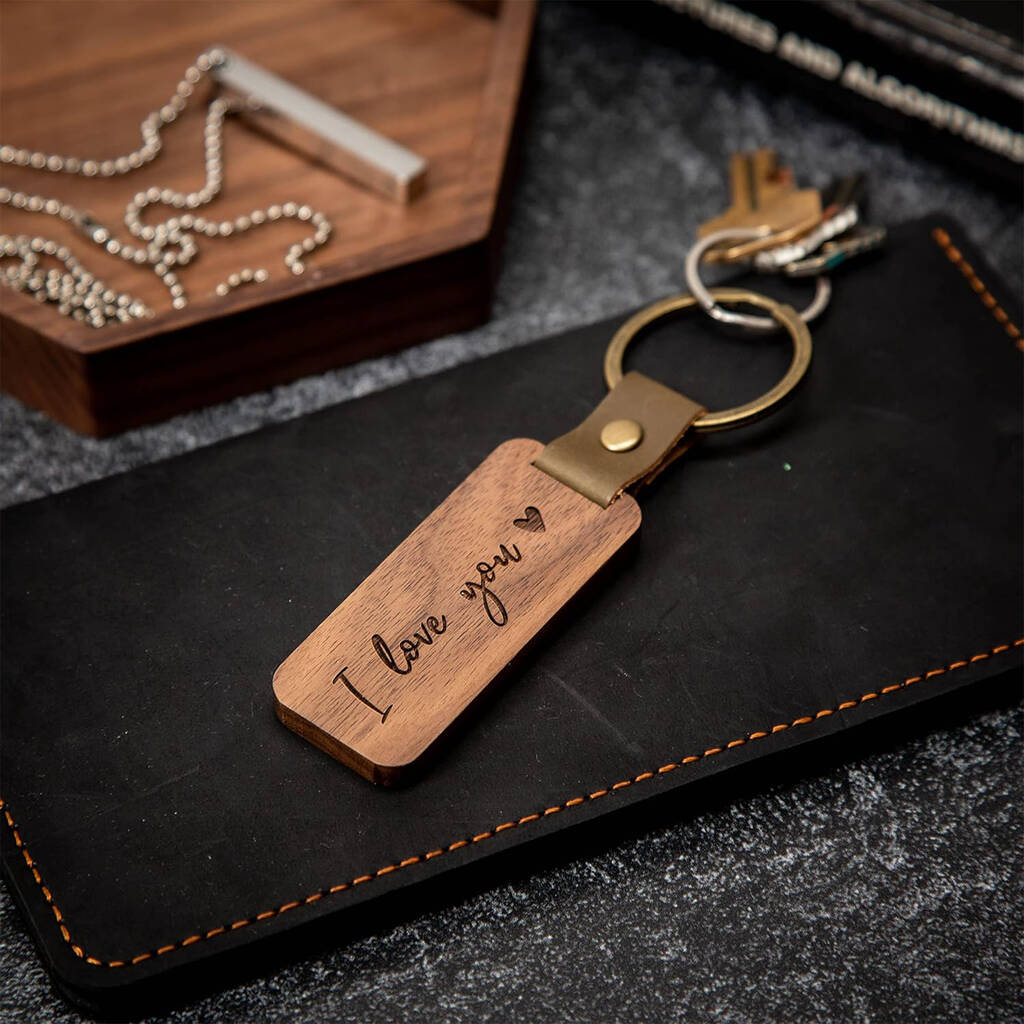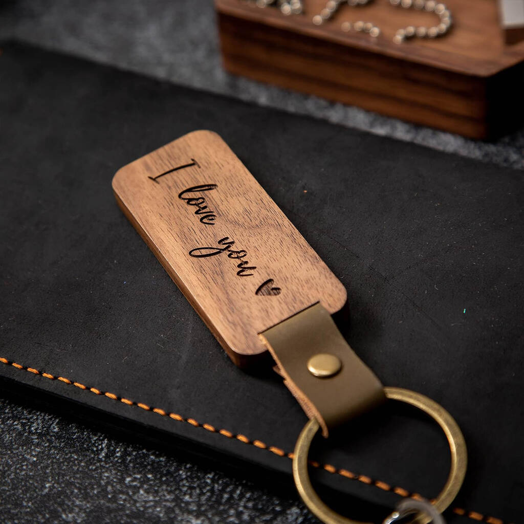 Handcrafted walnut wooden keychain, custom engraved for a unique touch. Perfect personalized gift for birthdays, anniversaries, or special occasions. Stylish, durable, and meaningful accessoryThis personalized wooden keychain is a thoughtful and stylish accessory, handcrafted from high-quality walnut wood for a natural and timeless look. Each piece is custom engraved with your chosen text, making it a unique keepsake for birthdays, anniversaries, weddings, or any special occasion. Lightweight yet durable, it features a sturdy metal ring to securely hold your keys while adding a touch of rustic charm to your everyday essentials. With multiple font options available, you can create a truly personal gift that your loved ones will treasure and carry with them daily.