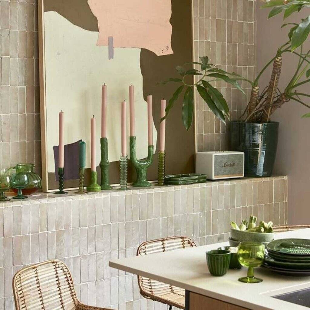 H Kliving The Emeralds Glass Candle Holder Lime