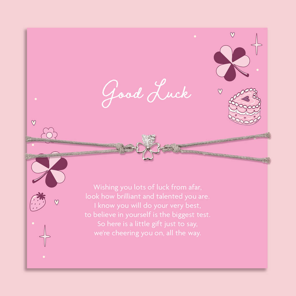 Presented on a soft pink illustrated card with a heartfelt poem, it makes a thoughtful gift for exams, new jobs, interviews, driving tests, or any exciting new chapter. The neutral adjustable cord with sliding knots ensures a comfortable fit for most wrist sizes.