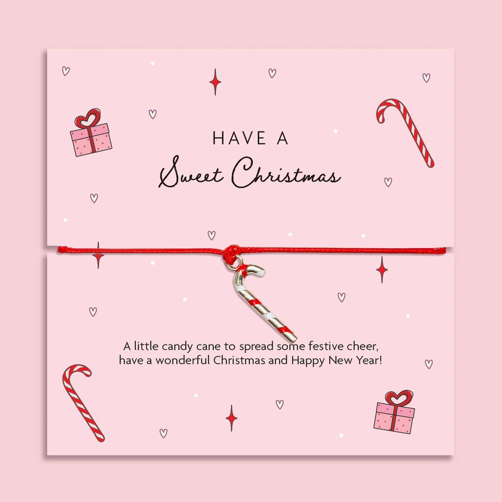 Featuring a delicate silver candy cane charm on a bright red adjustable string bracelet, this thoughtful keepsake is presented on a beautifully illustrated card with the message “Have a Sweet Christmas”. Designed to capture the magic of the season, it’s a meaningful way to spread cheer and show appreciation.