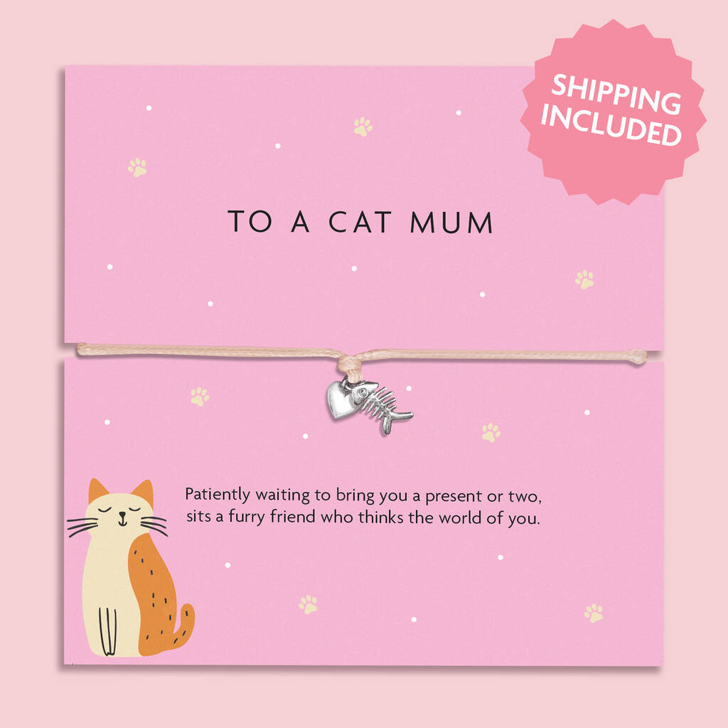 To A Cat Mum Heart And Fish Bone Adjustable Bracelet