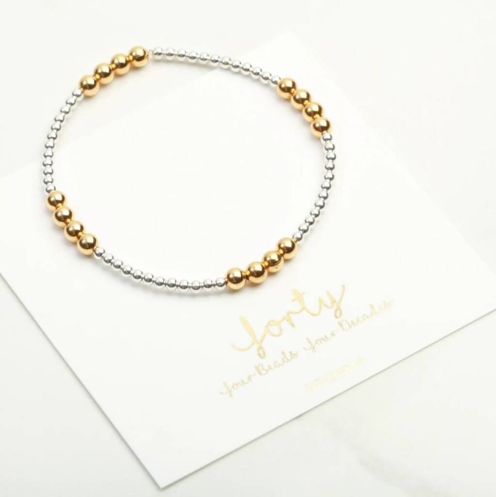 This handmade bracelet is delicate but has lots of style. With added meaning, the accent beads are available in Rose Gold and Yellow Gold.