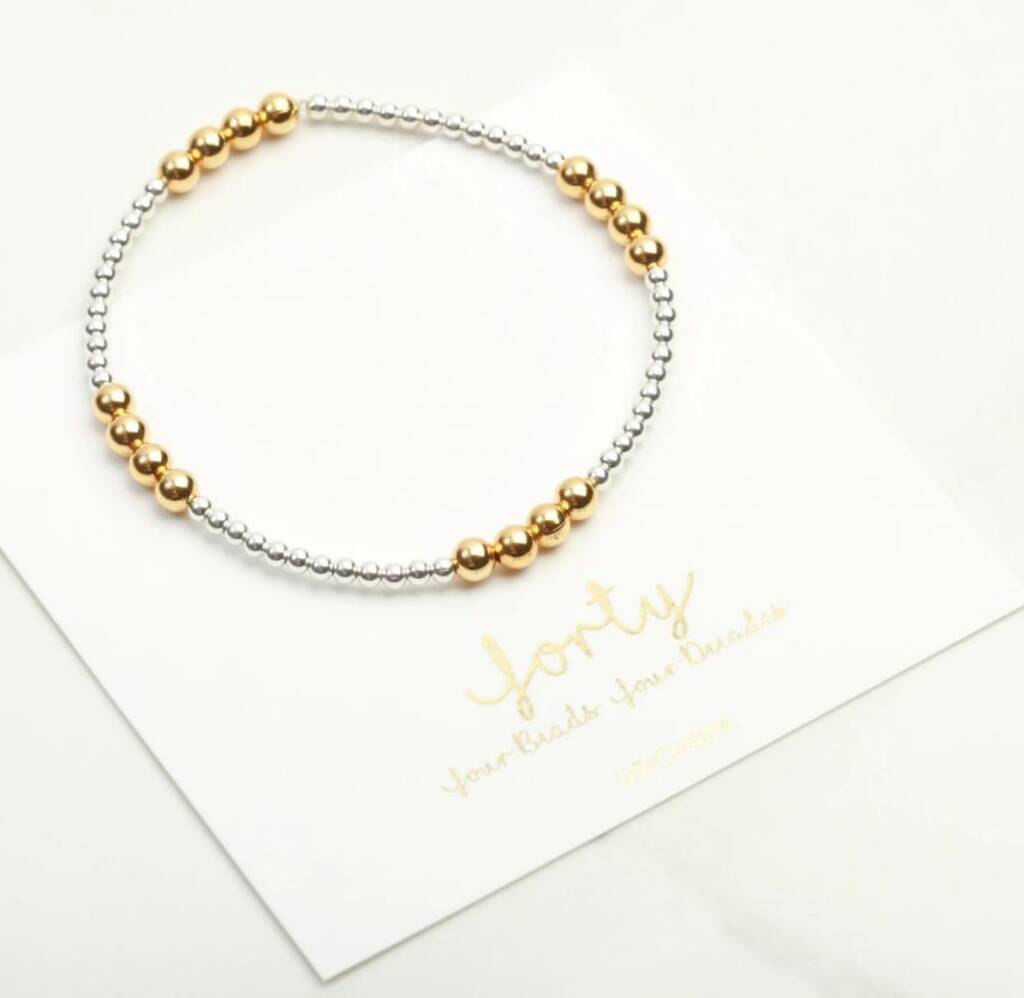 This handmade bracelet is delicate but has lots of style. With added meaning, the accent beads are available in Rose Gold and Yellow Gold.