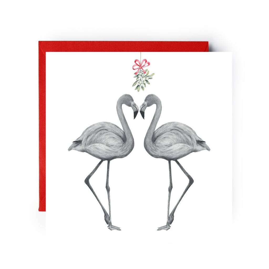This holiday season, add a splash of color and charm with our delightful Flamingo Couple under the Mistletoe Christmas card! Hand-drawn in our Windsor studio, this whimsical design features an adorable pair of flamingos sharing a festive moment beneath the mistletoe. It's the perfect card for those who appreciate unique and playful holiday greetings.