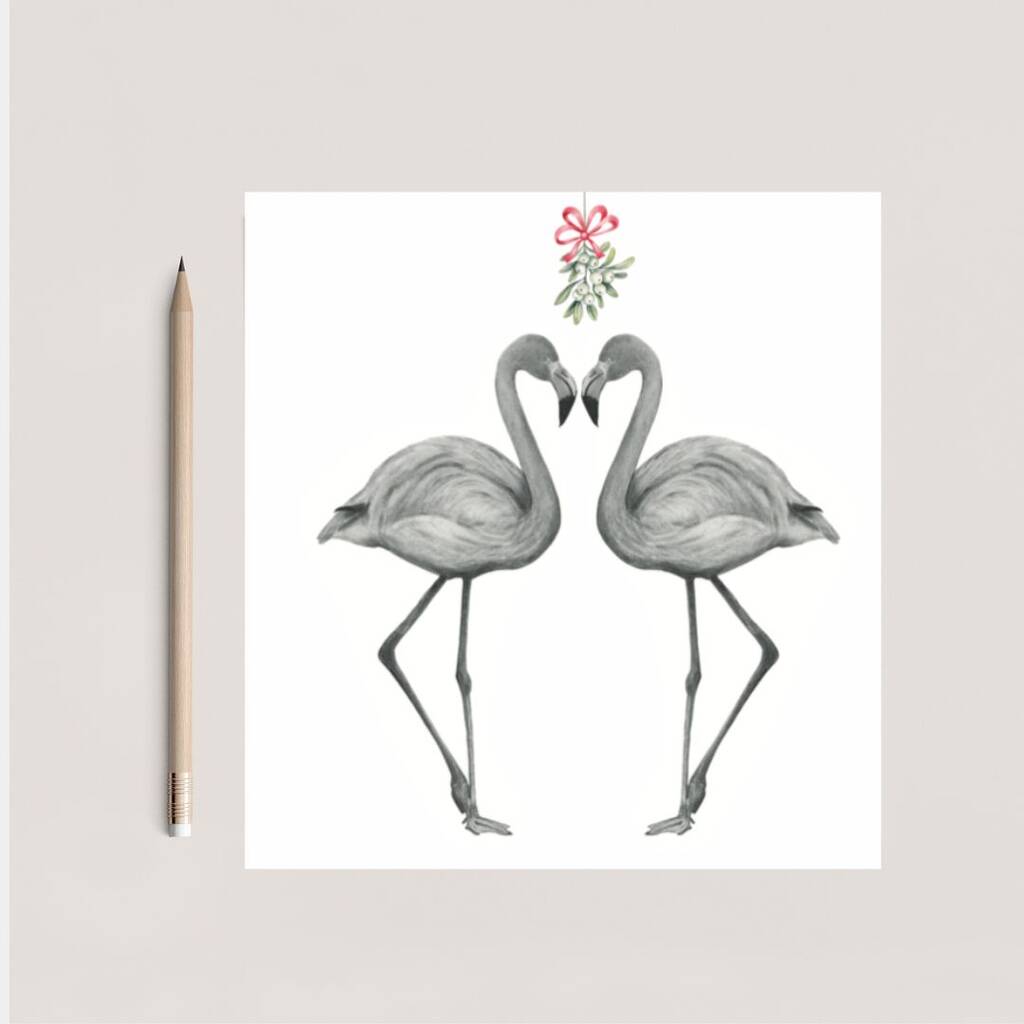 Exclusive Hand-Drawn Artwork: A charming illustration of a flamingo couple, radiating love and holiday spirit.