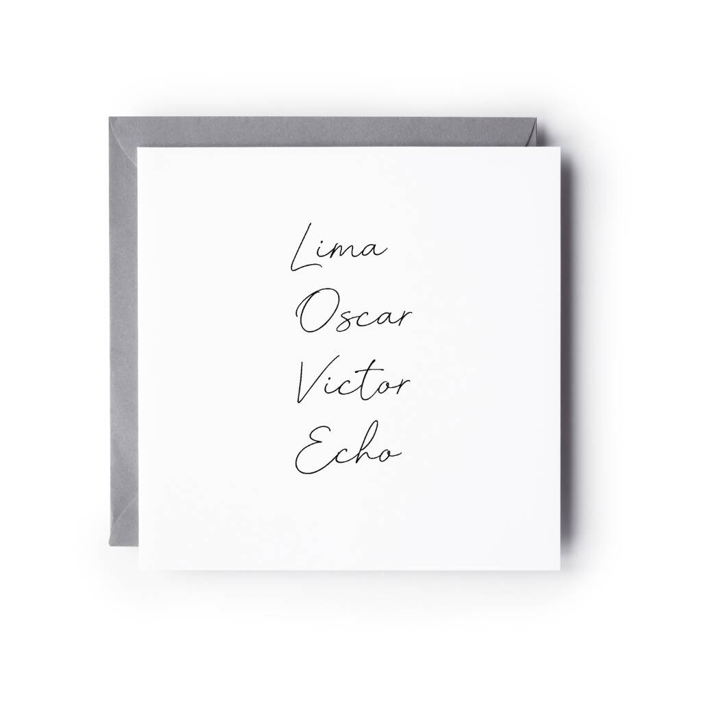 Love Phonetic Alphabet Greeting Card – Lima Oscar Victor Echo