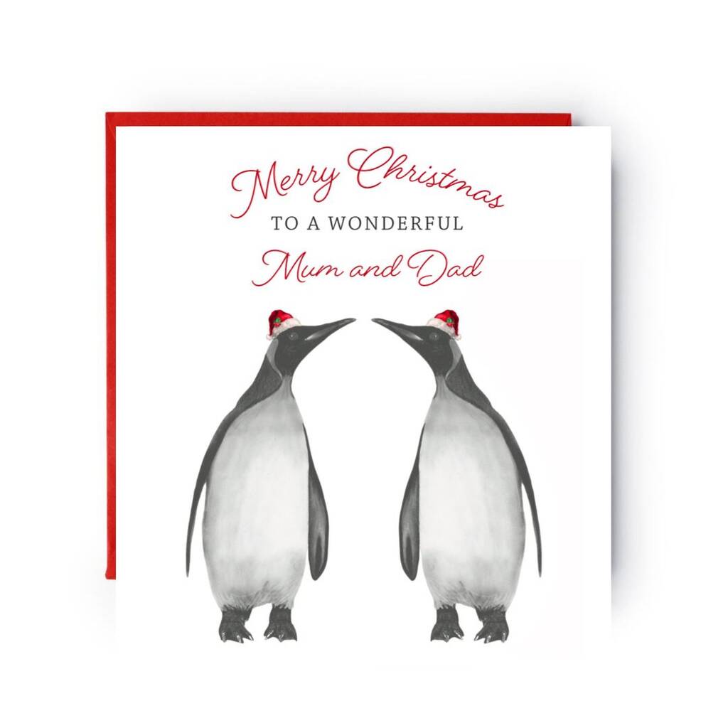 Festive Penguin Santa Hat Christmas Card – For a Wonderful Mum and Dad!