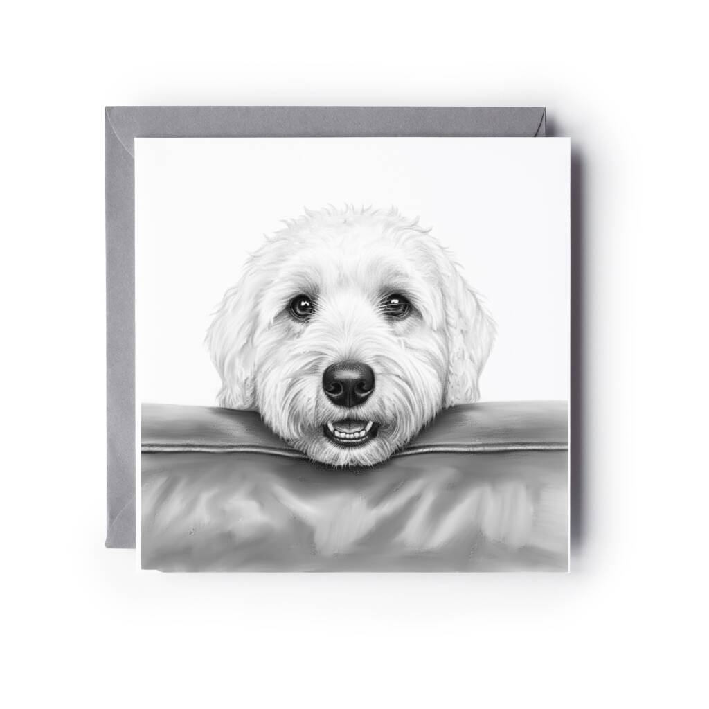 Peeking Cockerpoo Sofa Greeting Card – Cute Dog Lovers Card