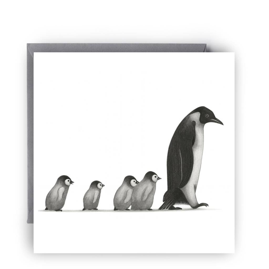 Delight in the charm of the season with our Cute Penguin Family – Follow Me Greeting Card, featuring an adorable hand-drawn penguin family waddling together,