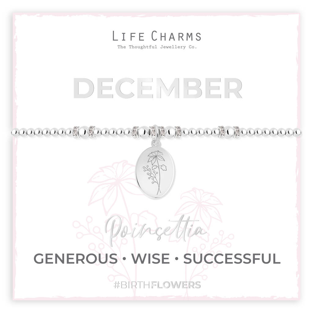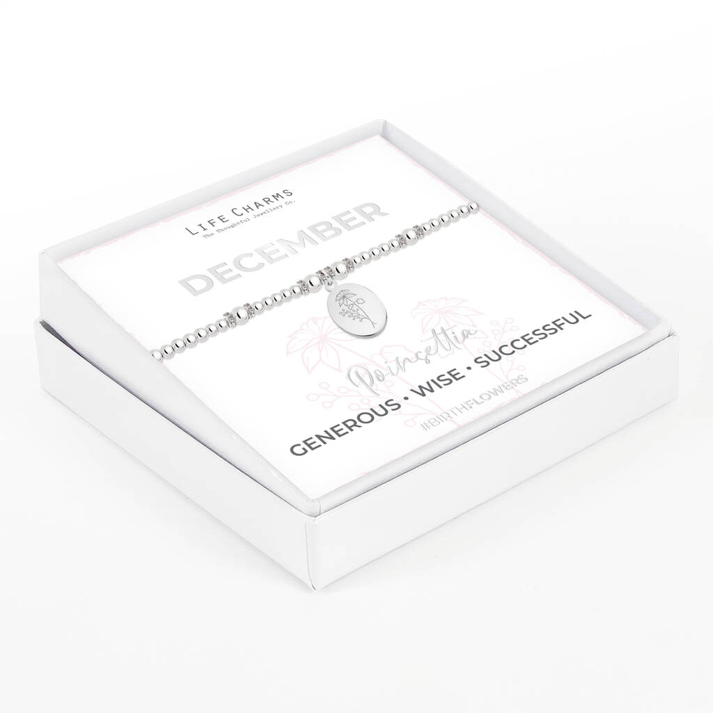 December Birth Flower Silver Plated Beaded Charm Bracelet