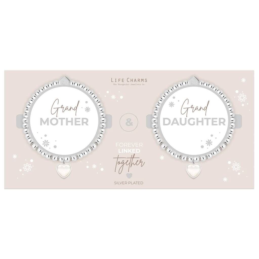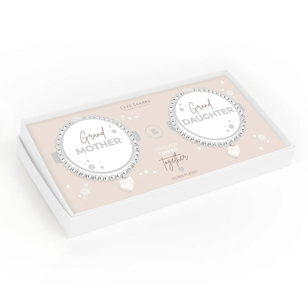 Grandmother And Granddaughter Pearl Heart Charm Bracelet Set