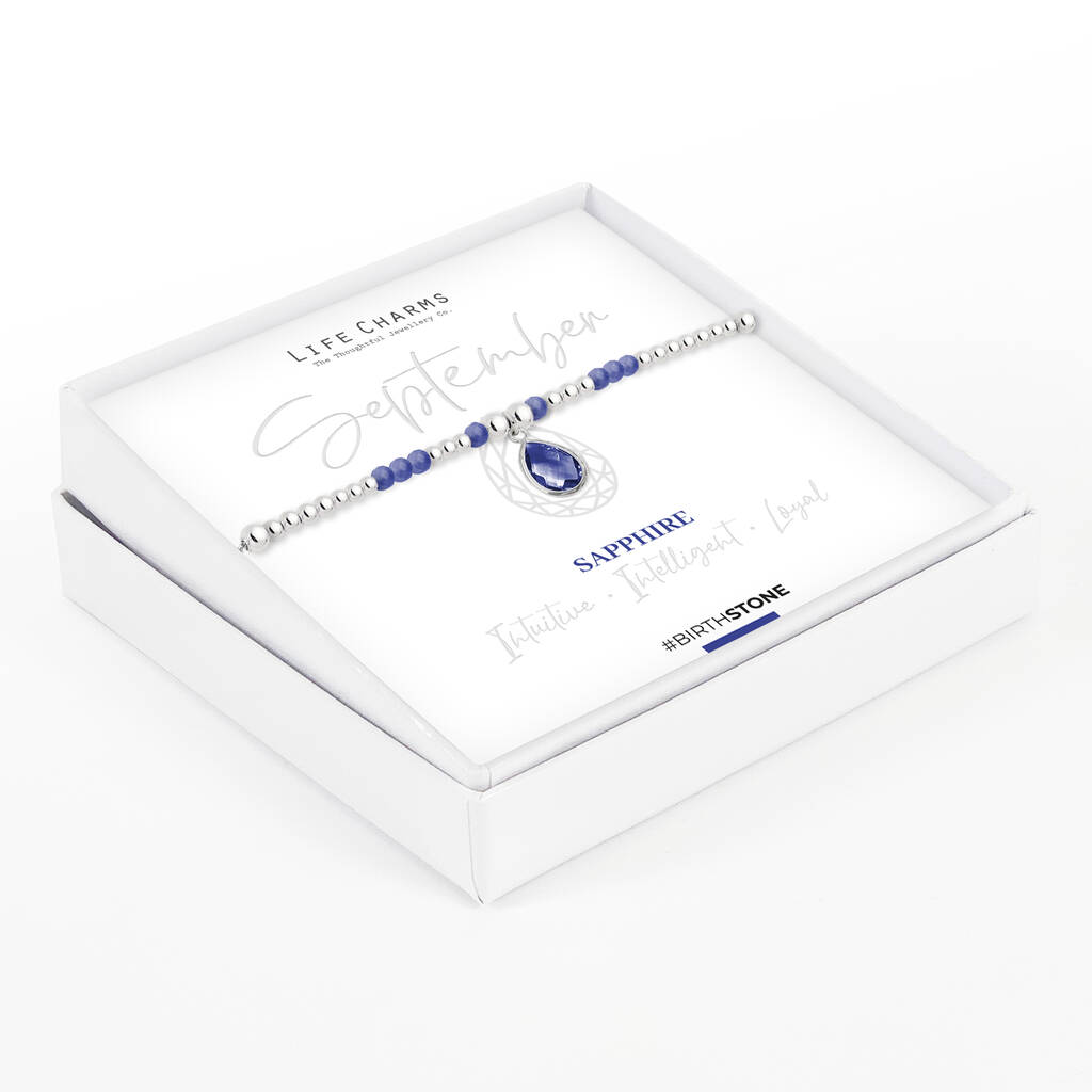 September Sapphire Birthstone Charm Bracelet Gift