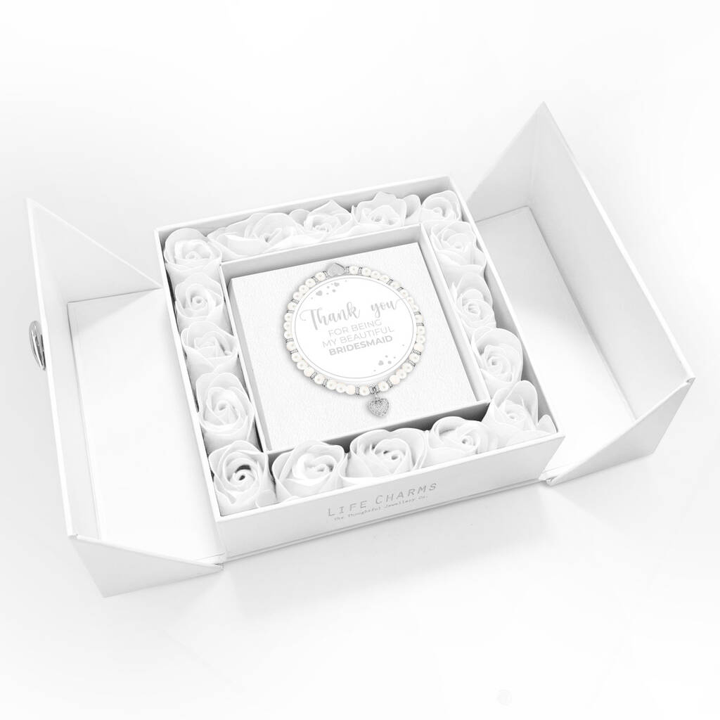 Thank You Bridesmaid Freshwater Pearls Charm Bracelet In Flower Box