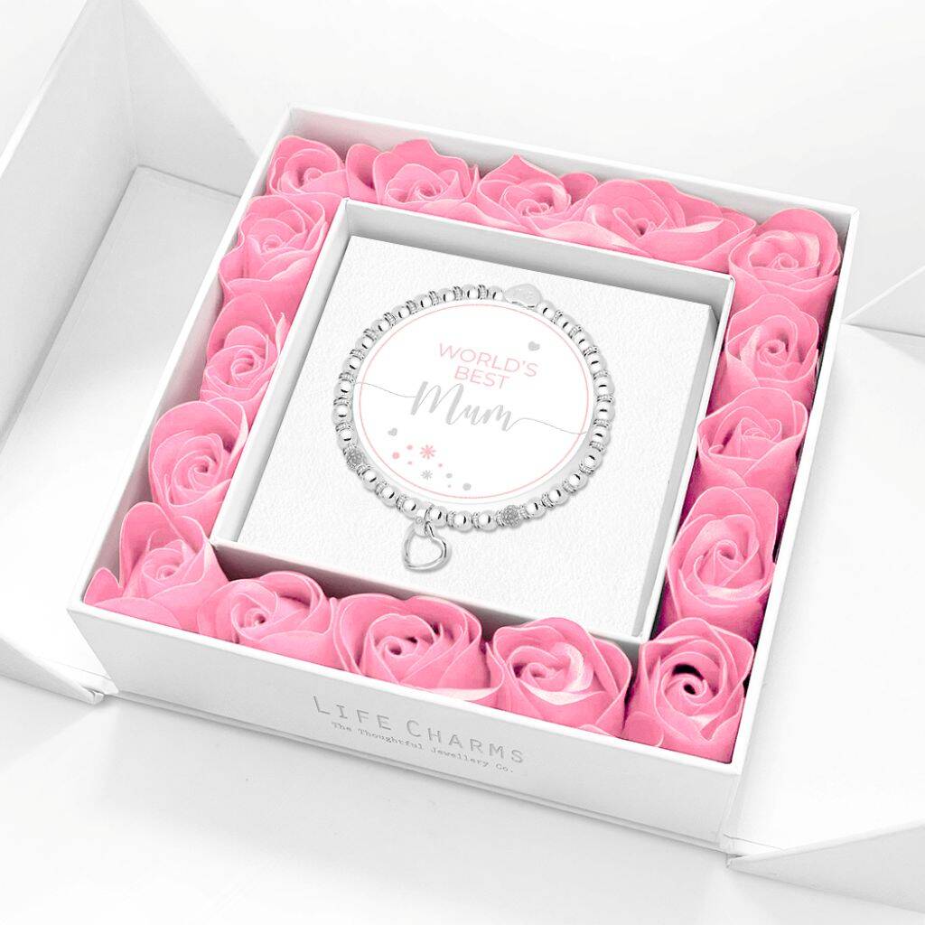 Worlds Best Mum Heart Bracelet Luxury Flower Box