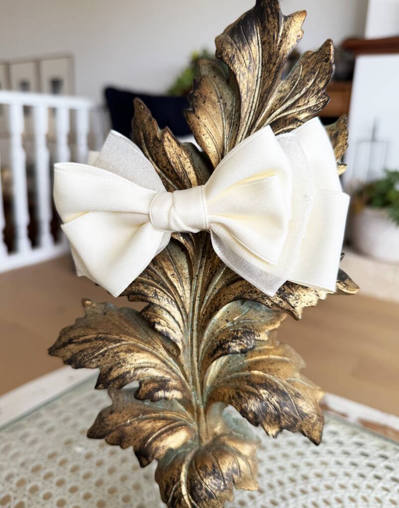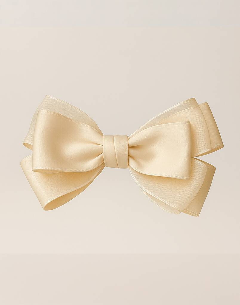 Sugar Cream Bow Barrette With A Pink Satin Drawstring Bag
