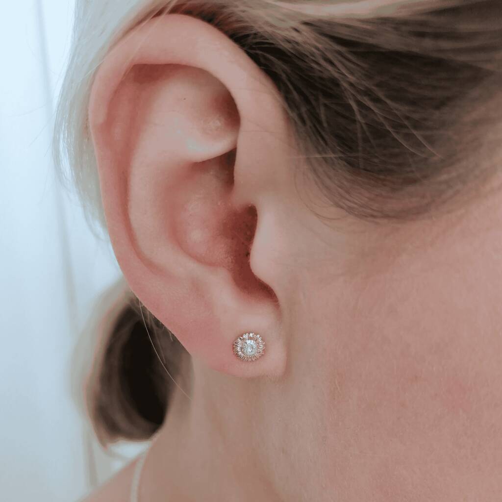18ct Gold And Sterling Silver Sunflower Stud Earrings