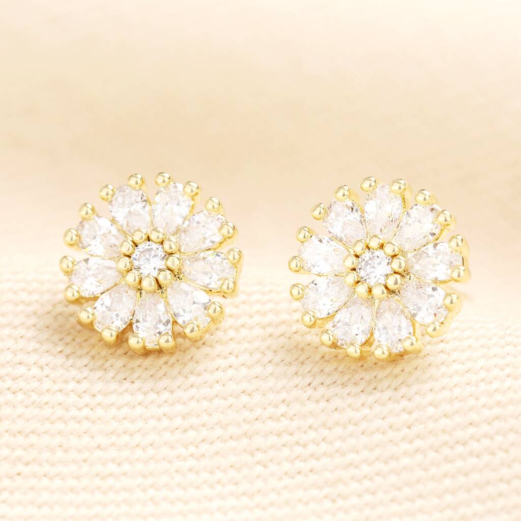 Crystal Flower Burst Earrings In Gold, 1 of 1