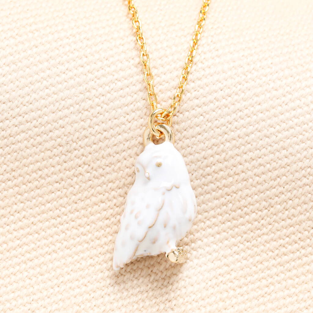 Enamel Owl Pendant Necklace In Gold Plating