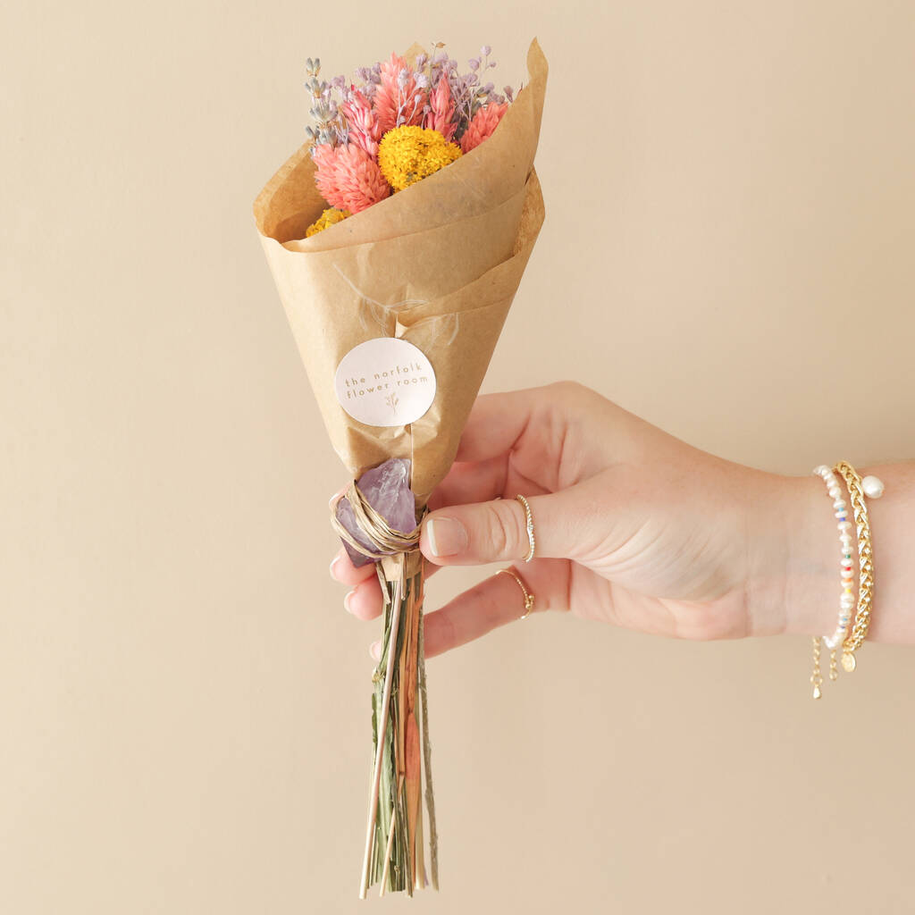 Get a mini posy of dried flowers sent straight through someone's door with our dried flower bouquet letterbox gift!