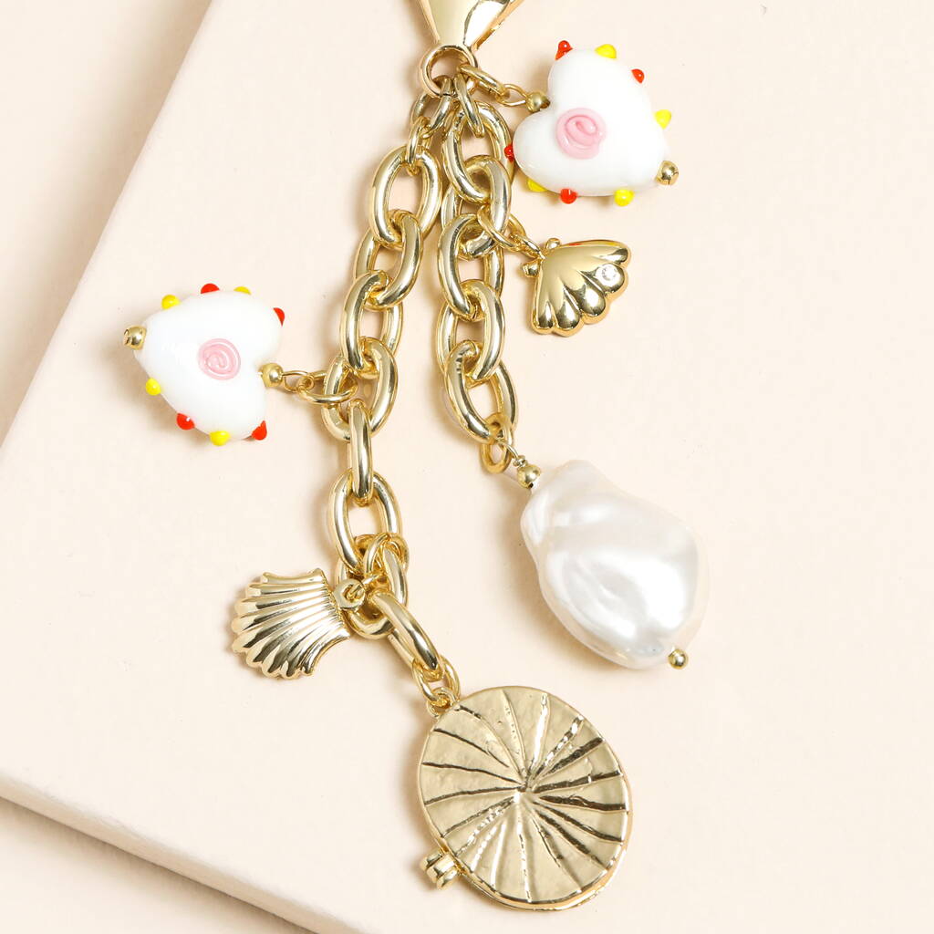 Pearl Heart And Shell Charm Keyring And Bag Charm