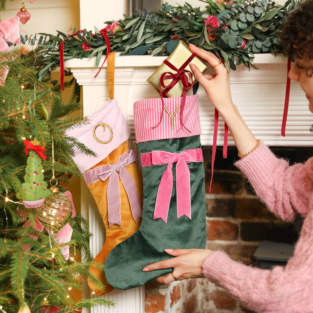 Personalised Two Tone Velvet Bow Stocking, 1 of 2