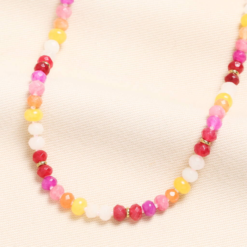 Made of 14ct gold plating and stunning glass beads, this necklace takes inspiration from sunsets. From our Amalfi collection, this necklace would look wonderful layered with other chains and beads for a stacked look. With a magnetic closure for easy attaching, this necklace is ideal for beach days, pools days, and long walks.