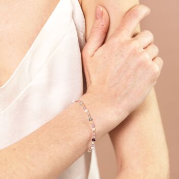 Semi Precious Pearl Purple And Blue Beaded Bracelet In Gold