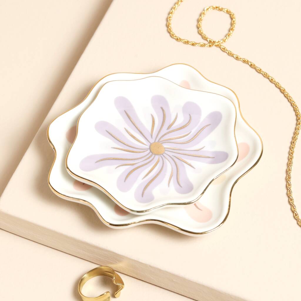 Set Of Two Wavy Organic Floral Trinket Dish Set