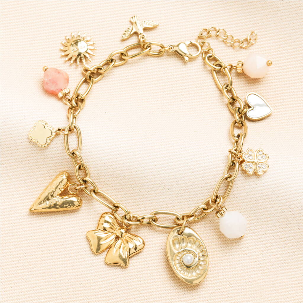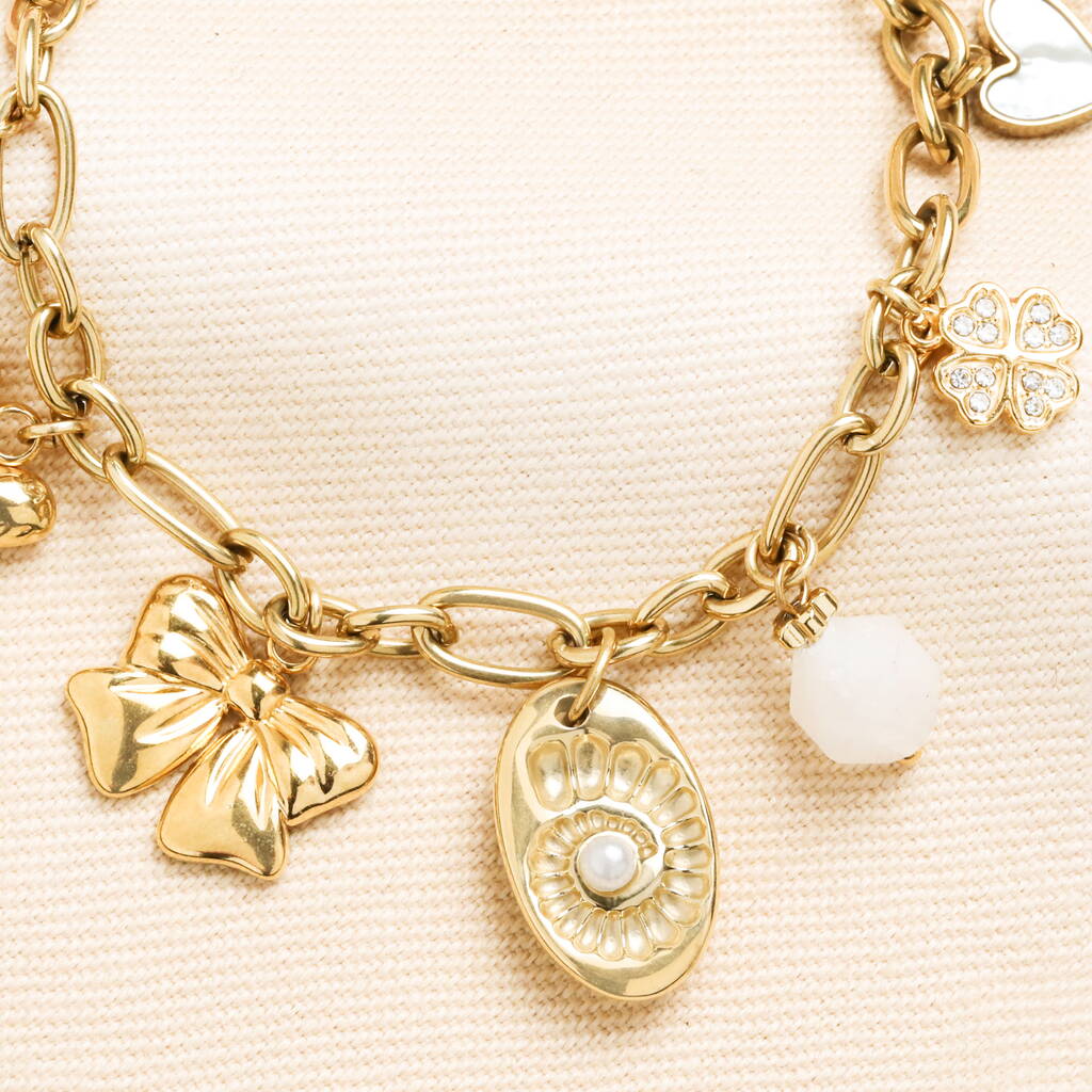 Stainless Steel Chunky Oversized Charm Bracelet In Gold Plating