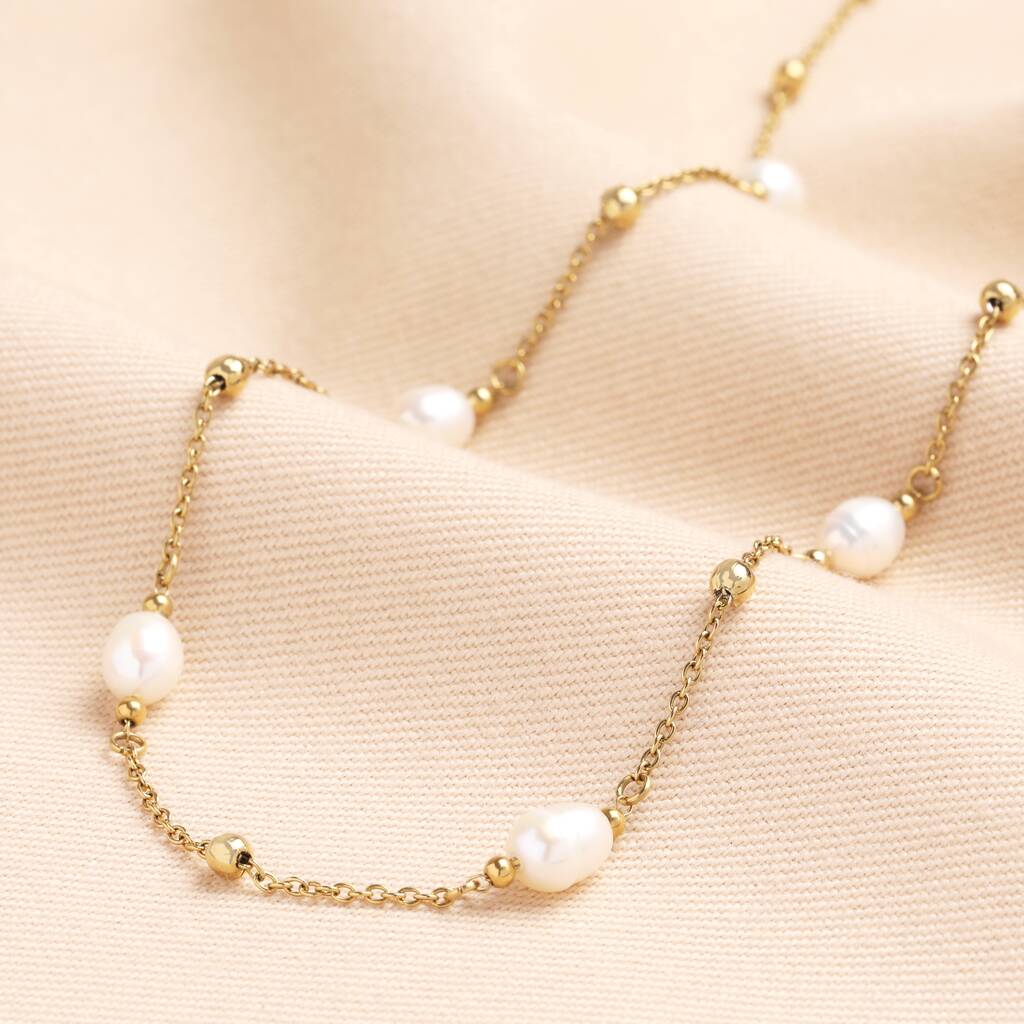 Stainless Steel Pearl And Ball Long Chain Necklace In Gold