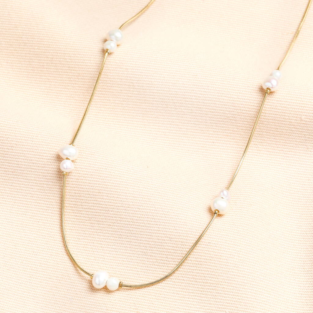 Stainless Steel Pearl Snakechain Necklace In Gold Plating