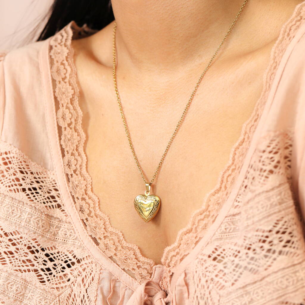 Stainless Steel Swirl Heart Locket Necklace In Gold Plating